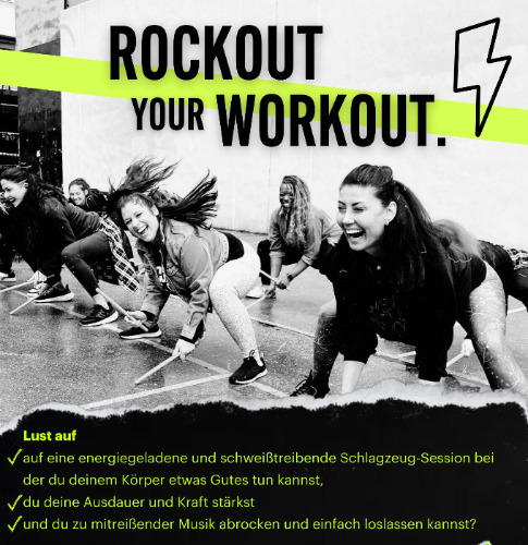 eine energiegeladene und schweißtreibende Schlagzeug- Session bei der du deinem Körper etwas GUTES tun kannst